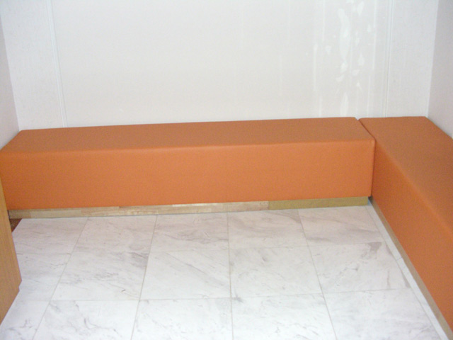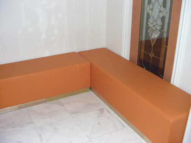 店舗で壁に沿ってソファを設置する場合、壁に曲面があったり