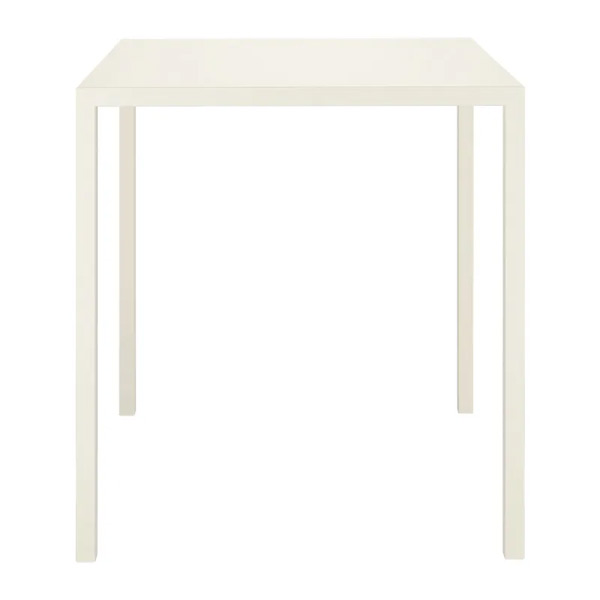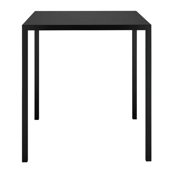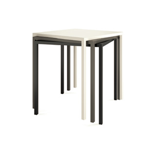シンプルなスクエアデザインの屋外対応テーブル。スチール亜鉛メッキフレームに粉体塗装を施し、高い耐久性を実現。スタッキング収納も可能で、カフェや商業施設に最適です。