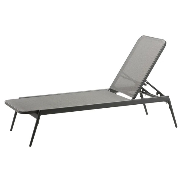 軽量アルミフレームを採用した屋外対応シェーズロング。リクライニング4段階調整が可能で、プールサイドやテラスで快適なリラックスタイムを演出します。