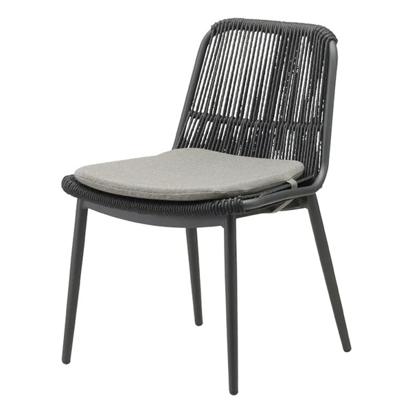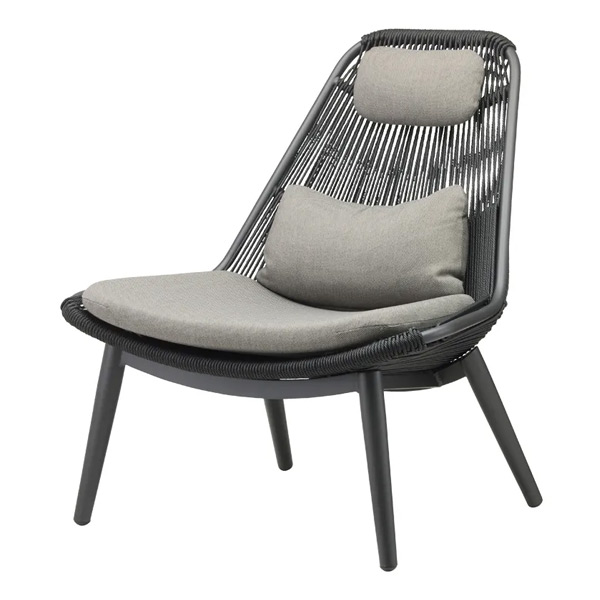 軽量アルミフレームにロープデザインを組み合わせた屋外対応チェアシリーズ。水や汚れに強いクッション付きで、カフェやテラス空間に最適です。