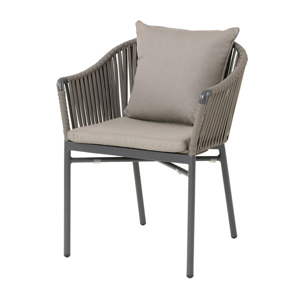 背もたれのロープは耐候性のあるPVC製。屋外でも安心してご使用いただけます。