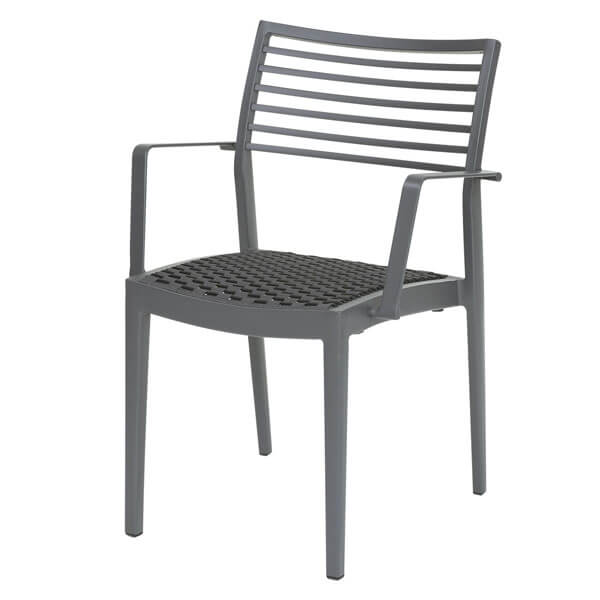 座面は、座り心地を重視したベルト、ロープ編みのアルミチェア。