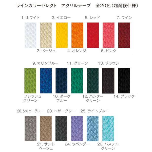 ラインデザインに使用するアクリルテープはPARA天幕と同等の超耐候性能があります。