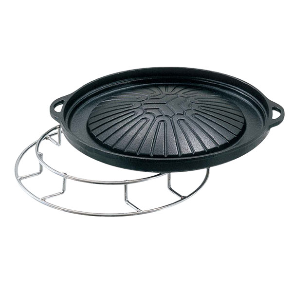 左)ジンギスカン鍋・ジンギスカンプレート受(別売り)