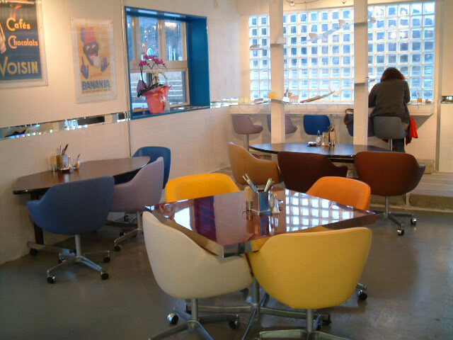 カラフルな椅子が店内に映えて遊び心もあるかわいらしい店内です。E家具.jpでご購入いただきありがとうがざいました。