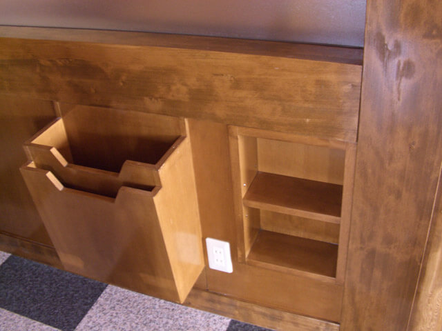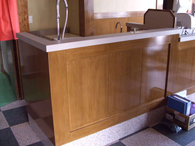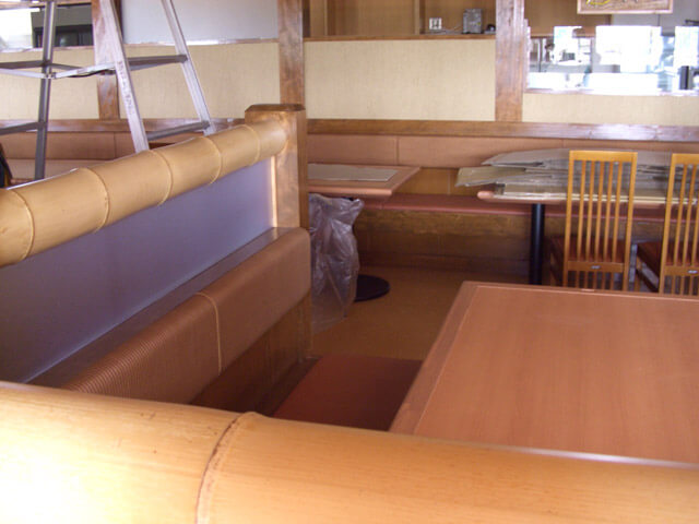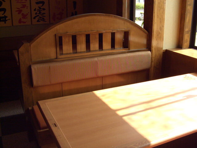 こちらはイス以外は全てオーダーでレジカウンターやベンチシート・テーブル・家具は全て特注です。