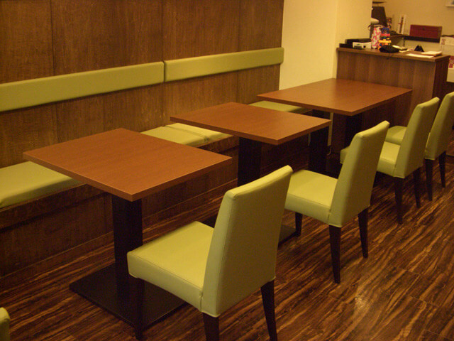 クレスの木製椅子キエロ、温かみのあるテーブルをご注文いただきました。明るい店内がより楽しい明るい空間になりました。