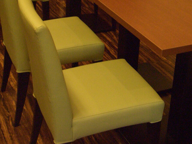 椅子のカラーに合わせて長椅子の席部分の張替えをして統一感があります。