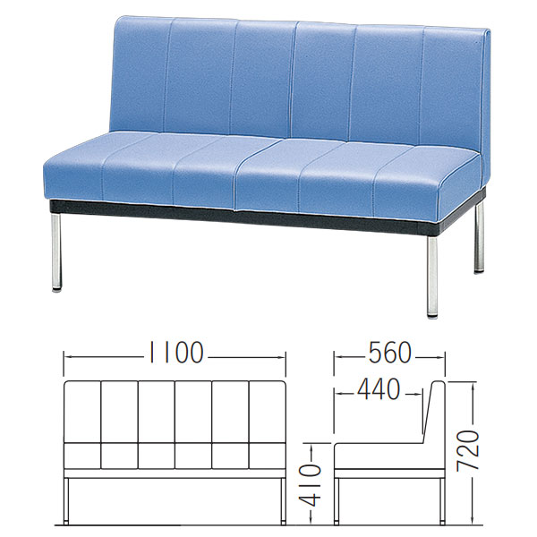 立ち上がりやすい座面高と、抗菌レザーの豊富なカラー展開が特長の待合いベンチソファシリーズ。