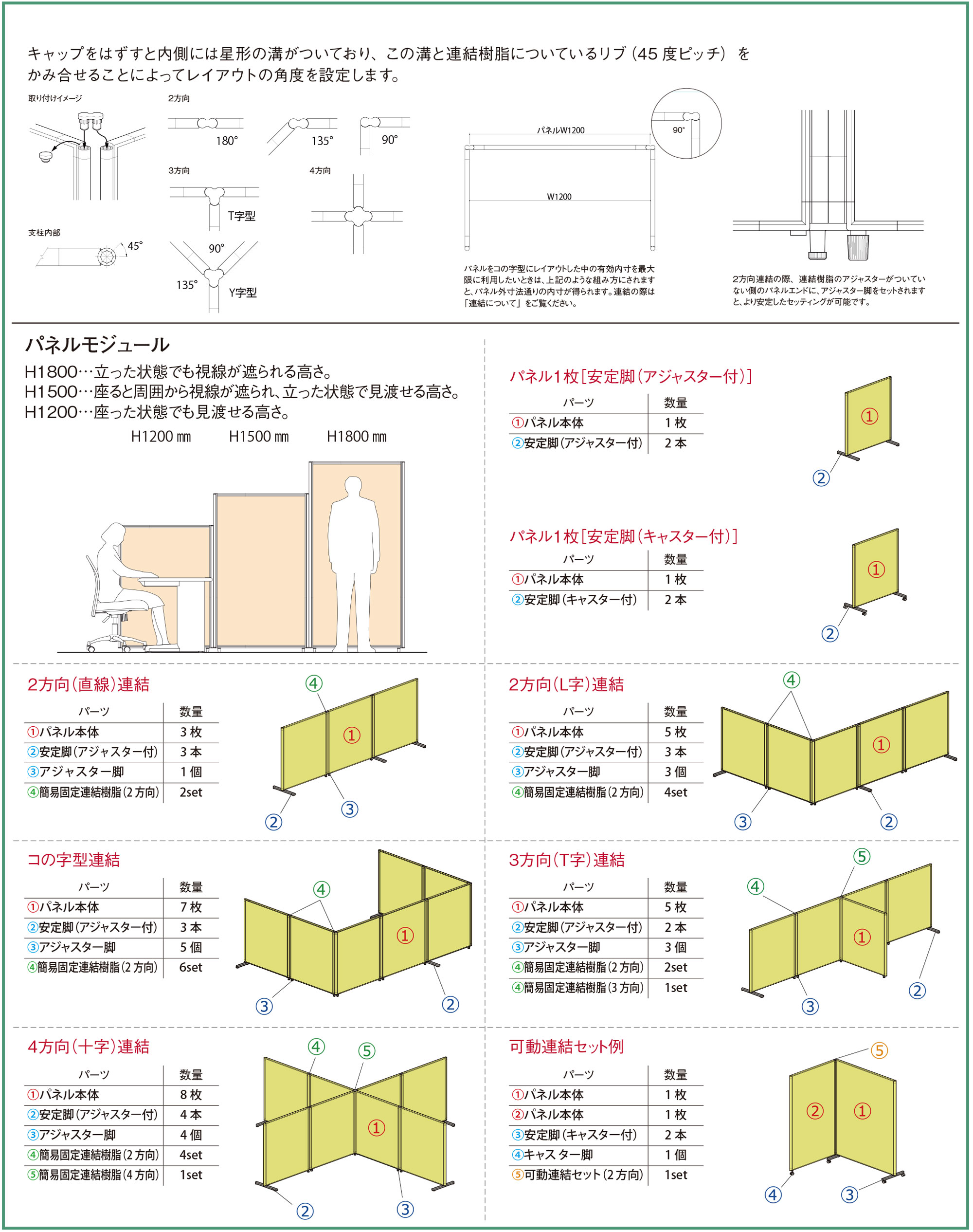 ※キャスター脚/アジャスター脚は、パネル1枚のみでのご使用はできません