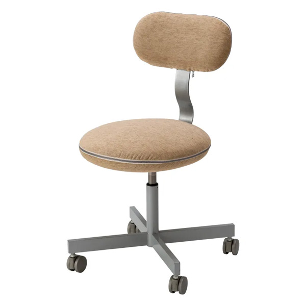 お菓子のマカロンのように可愛らしいふっくらとしたフォルムのワークチェア。昇降機能付で座面の高さ調整が可能です。脚部の色はシルバーと黒からお選びいただけます。