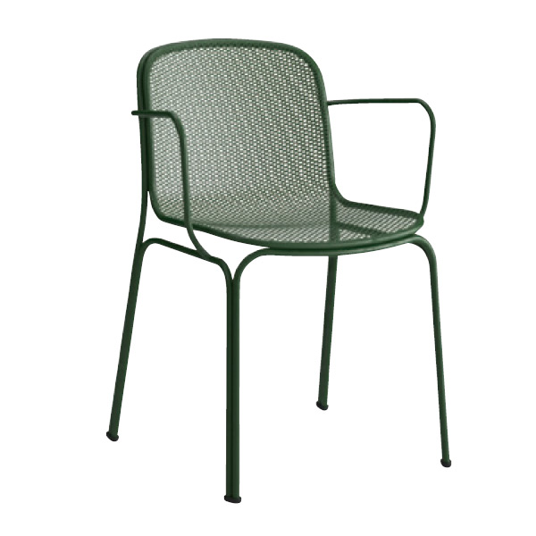 涼しげな雰囲気のチェア。アーム無し/アーム付きの2タイプからお選びいただけます。屋内でも屋外どちらでも使用できます。
