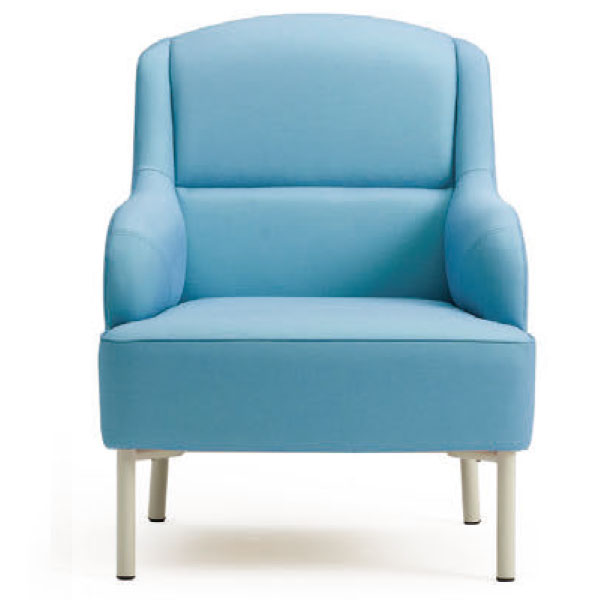 内側に向けて丸味を持たせたアームレストが優しい印象を与え、ロビーでの緊張感を緩和させます。