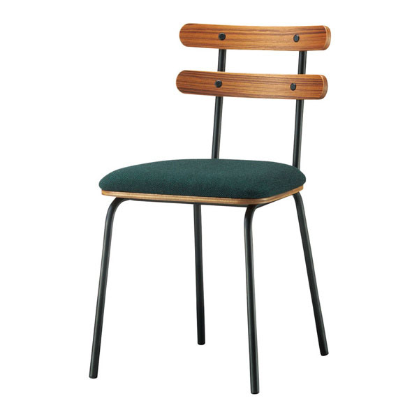 木部の質感を楽しむ、木金混合チェア。豊かな木目の表情とその形状により、賑やかで温かみのある空間を演出します。
