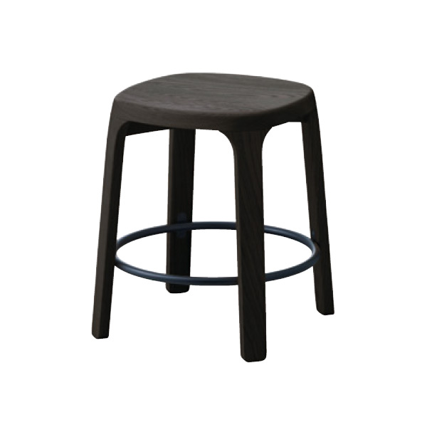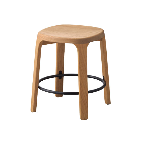 背もたれのないスツールタイプで、どんな空間にもなじむシンプルなシルエット。長時間の着席もラクに過ごせるよう、ブラックカラーの足掛けを搭載。デザインにアクセントも加えます。