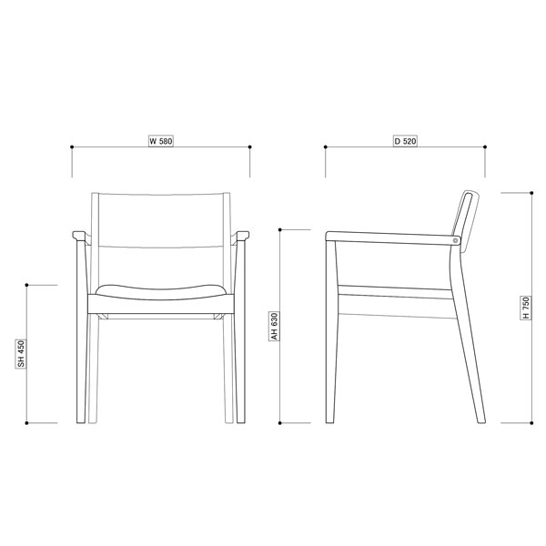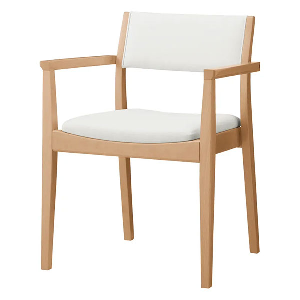 ビーチ材フレームの和風テイストな木製椅子です。背もたれ部分はファブリックパネル、ウッドパネルから選べます。アームレスチェアのご用意もあります。
