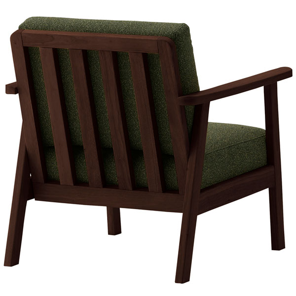 背面が縦桟フレームの木製チェア。こちらの商品は、座面高さ390mm・奥行き525mmのリラックスタイプです。