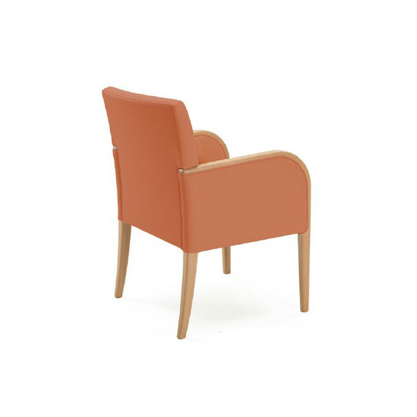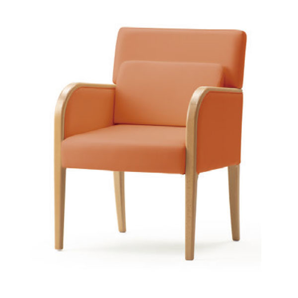 一般的な椅子に妊婦さんが座ると上体が少し前かがみになり、お腹に負担をかけます。妊婦さん用の椅子は、シート後ろ上部の高さを通常の椅子より高くし、お尻の沈み込みを抑え、立ち上がりやすくしました。 実際に妊婦さんがお座りいただくと上体が前かがみになることを軽減し、お腹への負担を和らげます。さらに、背もたれの下にクッションを入れ心地よいフィット感で腰を安定させます。