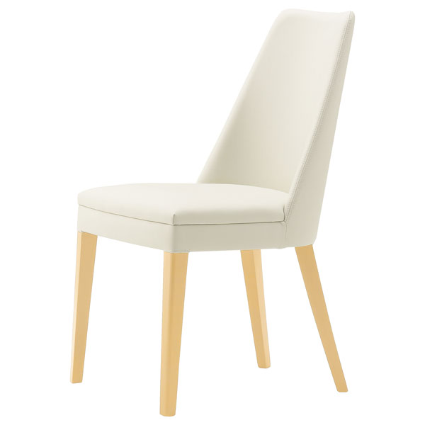 あらゆるシーンに幅広く対応する背張りぐるみチェア。バックレストの優雅なラインが印象的です。