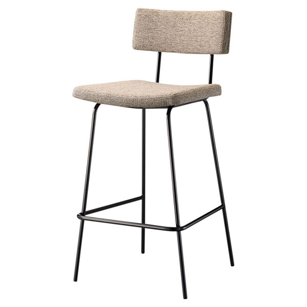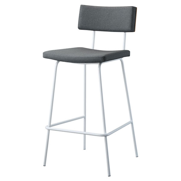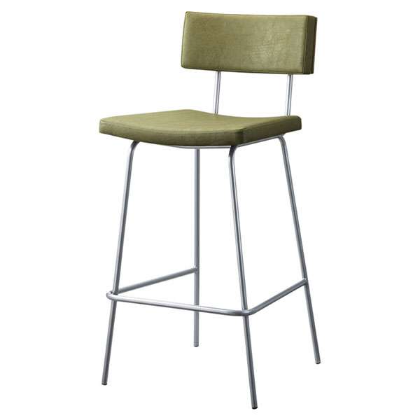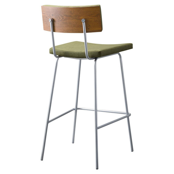 背面のメラミン化粧板が印象的なスチールチェア。店内インテリアに合わせてカラーを選べます。
