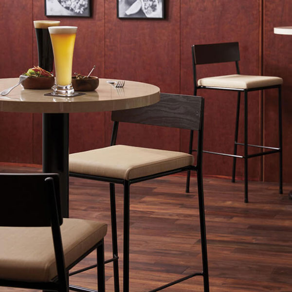 シンプルさを追求した木金混合スタイル。ブナ板目突板を使用した長方形の背板は、温かみと直線的な印象を同時に与えます。