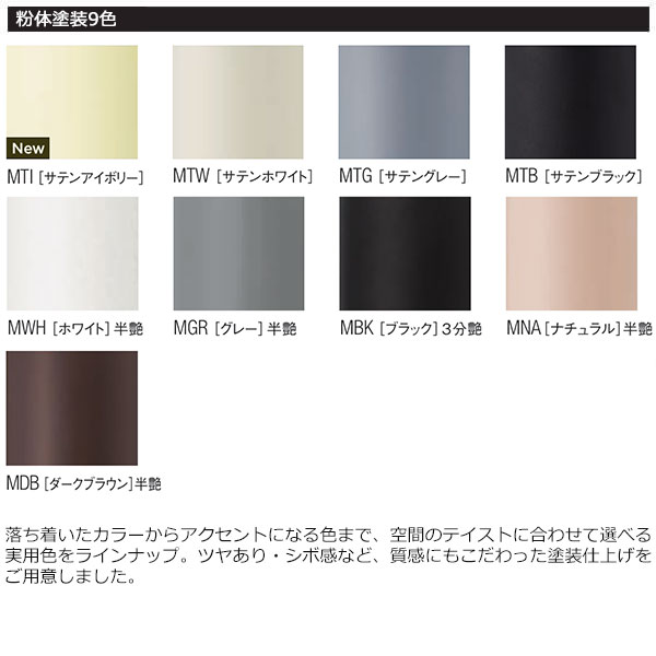 奥から)塗装色:粉体塗装(MBK・MGR・MDB)