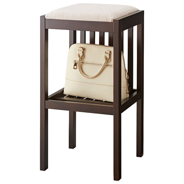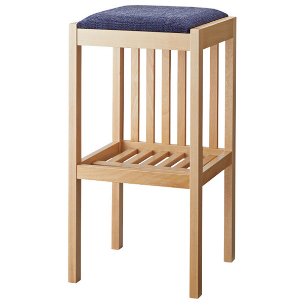 背もたれのない設計に棚板をプラス。縦格子デザインのスタンドチェアです。横格子デザインが特長のホリゾーもあります。