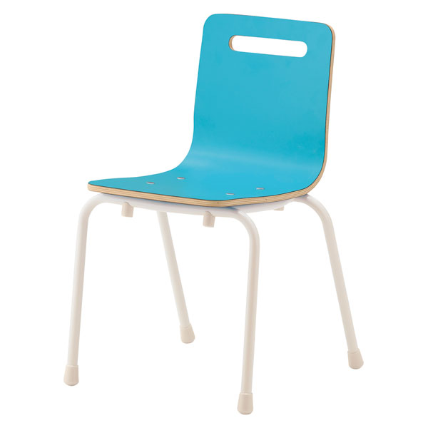 表面がメラミン化粧板でメンテナンス性の良い、L型成型合板のカラフルなキッズチェア。スタッキングもできるシンプルなフォルムは様々なシーンで使用できます。