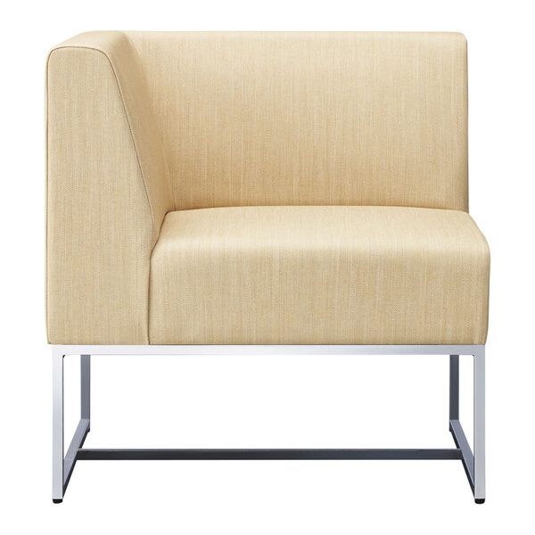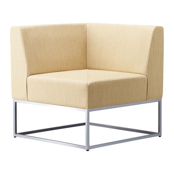 細身の角パイプで魅せる、組合わせ式のソファ。ロビーや待合いをスタイリッシュかつ、知的に演出。フレームはブラックとクロームメッキと2タイプあります。