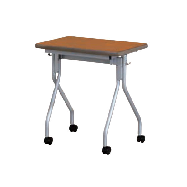 天板跳ね上げによる平行スタッキングが可能で、棚やフックも付いた、便利な研修用テーブルです。