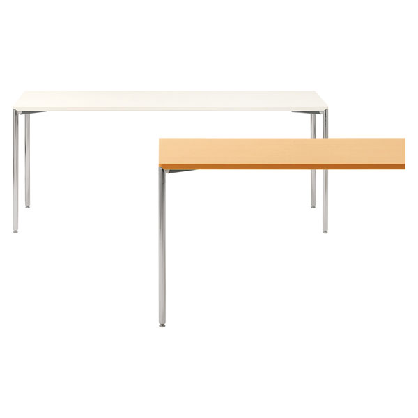 スリムポールの繊細なフォルム。天板と脚との一体感が美しいテーブルシリーズ。スリムな脚によってできる広い間口は、チェアとのコーディネートにゆとりをもたらします。