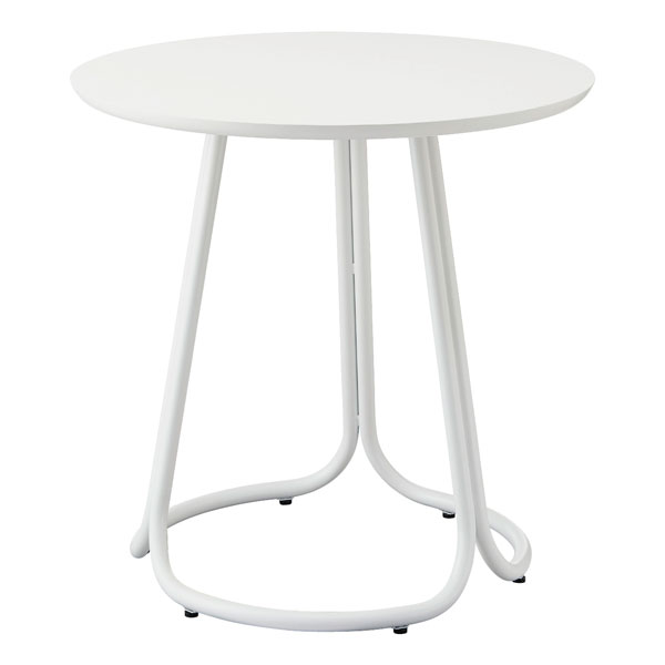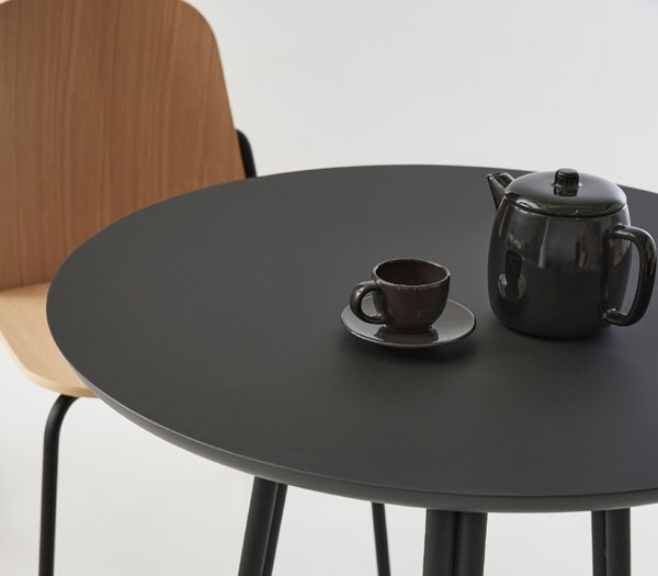 パイプならではの細さと強度、そして、シンプルなパーツの組合せによって、軽快でありながら優雅さも感じるテーブル。お互い支えあう脚は、利用者の足元に空間を確保できる設計です。