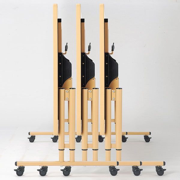 収納に便利なサイドスタッキング・アジャスト機能付キャスター脚の施設テーブルです。