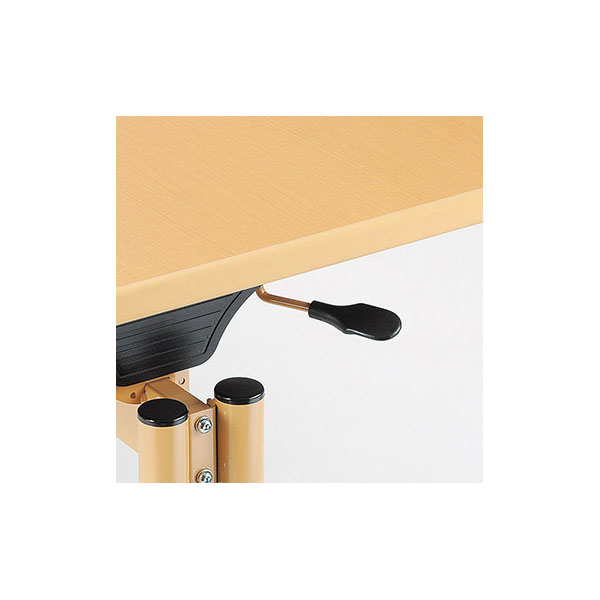 天板を最上段まで上げるとロックが解除し、ゆっくり天板が下がります。一番下まで下げると、カチッと音がしてロックが掛かりますので再度お好みの段数まで上げてください。
