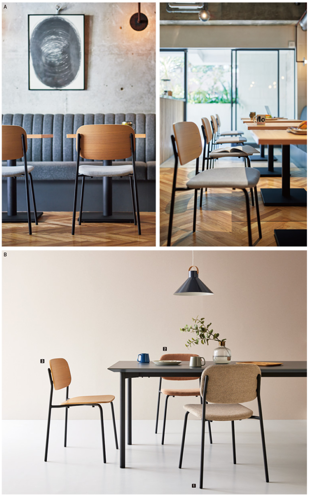 ▼人気の座部に、スチール・木製にとらわれない様々な脚部を組み合わせました。豊富なカラーバリエーションも魅力。