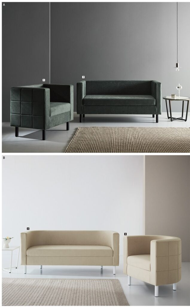 ▼モダンデザインのロビーソファから、オフィスで使用できるパーソナルソファなど。脚カラーを選べる物も多数あります。
