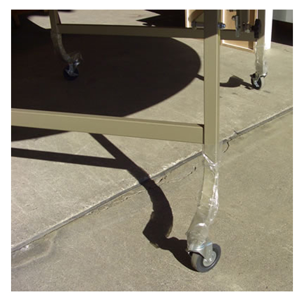 ■折り畳んで収納できるキャスター付テーブルです。